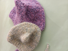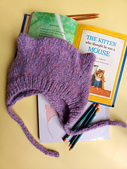 Description: This bonnet is worked flat, starting with a 1x1 ribbed edge. The main body begins flat in stockinette stitch. Two ear sections are established with markers. Ears are shaped using increases on either side of a central stitch. After the increase section, a seamless specific decrease sequence gathers all stitches of each ear. The work is then joined to be knit in the round. The crown is shaped using decreases at four points.