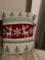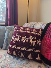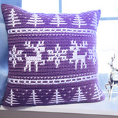 **A stunning Scandinavian-inspired Mosaic Pillow Crocheted as one piece, in the Round, featuring Dancing Deer, Pine Trees & Snowflakes!**