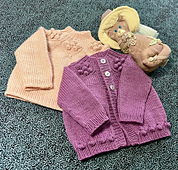 The round-yoked cardigan is worked top-down and seamlessly.