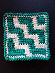 The coaster is an example for a geometric stairs motif described in the pattern.