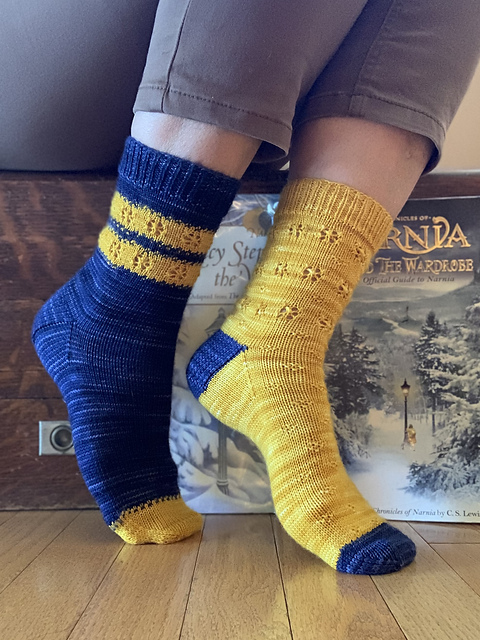 Inspired by the wonderful world created by CS Lewis in his books The Chronicles of Narnia, this pattern is designed to remind us that spring eventually comes, even after the longest of winters. The motif can look in turn like snowflakes or like flowers, depending on how you feel or how you look at them, and it makes these socks a little more special and magical. I hope knitting and wearing them makes you smile!
