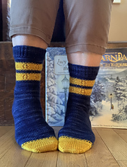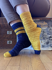 The Winter to Spring version is more textured and can be knit in only one colour, or with contrasting heel and toes as shown in the sample.
