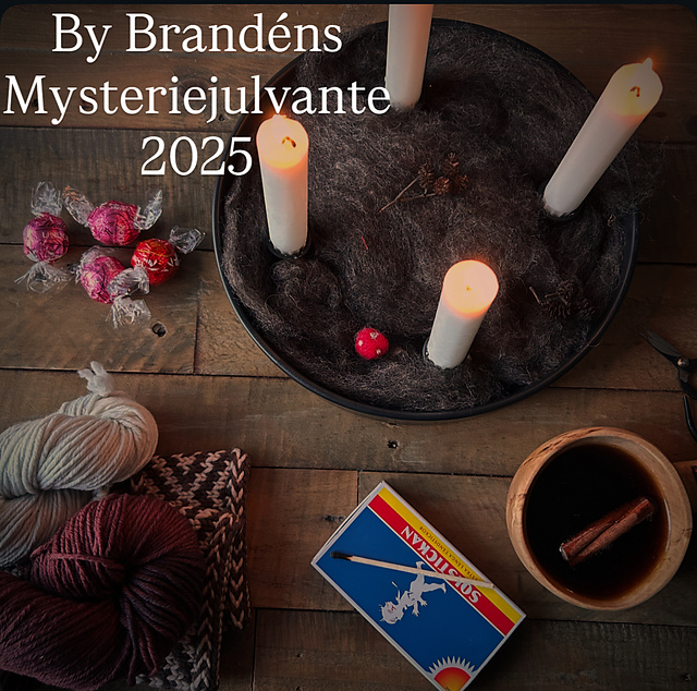 By Brandéns Mysteriejulvante 2025 is a Christmas Mystery Mitten knit along beginning the first Sunday of Advent and thereafter followed by a new part of the pattern the second and third Sunday of Advent.