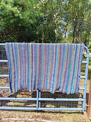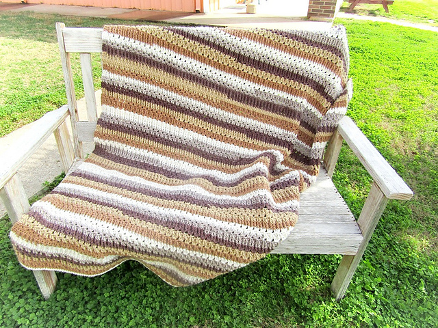 Amazing textured blanket pattern. Pattern uses self striping yarn but you can use a solid color or create your own stripes.