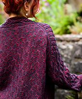 Rubra is worked seamlessly from the top down with diagonal (European) shoulders, then the fronts and back are joined and the body is worked in one piece. Stitches are picked up around the armholes for the sleeves, which are worked in the round. The cuffs and hem are finished with twisted ribbing and a tubular bind-off for a clean, polished look.