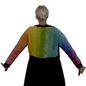 A sideways sweater, knit from the centre out to each cuff. Jolly Cardy is designed to make the most of a festive yarn mini-skein set and would also make a fun scrappy project or keep it simple with one colour. Work the 6-row stripe repeat or knit on, changing colours as inspiration strikes. The pattern offers a choice between two body lengths and a sleeveless or sleeve option. A deep twisted ribbing hem adds contrast to your Jolly Cardy.