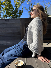 The Eloween Cocoon Cardigan is built on the kind of simplicity that feels almost magical: one large rectangular panel, folded and seamed into a relaxed cocoon shape, then finished with a soft double-folded ribbing that frames the entire body and sleeves. No shaping, no complicated construction - just intuitive steps that transform basic geometry into a cozy, atmospheric winter layer.