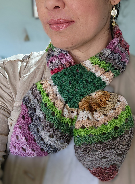 Looking for a punchy accessory to brighten up your winter wardrobe? Or looking for a quick, easy make for gifting? This chic little thing comes together very quickly with minimal fuss. With an easy and relaxing 4-row repeat, feel free to make this while relaxing in front of the tv with your favorite show!