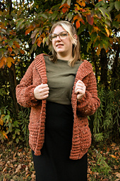 The Riley Cardigan is a classic Fall Cardigan made with a traditional top-down construction and a sophisticated fit. Designed for everyday wear, the Riley Cardigan is crocheted with an effortless stitch pattern to create an opaque, textured fabric that offers warmth and style without compromise. The irresistible plush fabric lends a beautiful drape for a store-bought look that can be hard to find in crocheted garments. This pattern will produce a wonderfully warm cardigan for you to enjoy throughout the colder seasons.