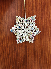 YARN: any cotton thread, lace or fingering yarn and optioneel glitter thread held together (sizeโฏ10 thread, lace weight of fingering yarn)