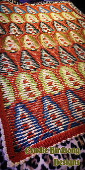This project is done in the overlay mosaic crochet method and has repeats to make various sized projects. As seen in the sample images, you can make a blanket or table runner, included in the instructions, or you can use your imagination to create other fun items using your favorite construction methods.