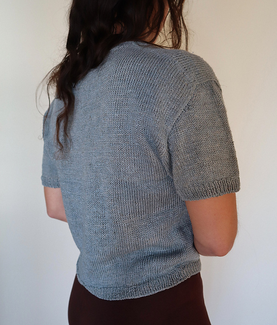 This tee is perfect for the warmer season, while it can be worn with a cardigan in the colder months. The one shown in the pattern was made in linen, but it can be made in wool or any other material as well.