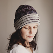 This hat is, after the [cowl][1] and the [sweater][2], the third piece in the Old Compass collection. Same as the cowl, it is double-sided and reversible. One side with the beautiful, "all-over" colorwork, and the other side with simple stripes. This will give you quite a few options on how to wear the hat, either one or the other side, or both visible with the bottom folded for some extra warmth.