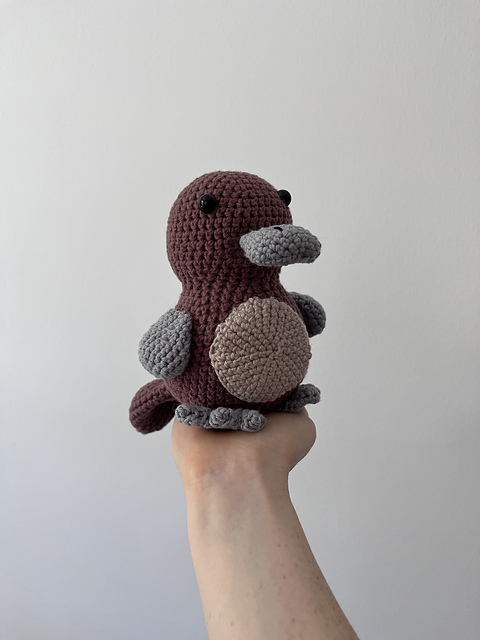 Note- these measurements are approximate and are based off materials above. If you use a different yarn or hook size, your platypus will still be great, but might be a slightly different size.