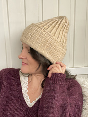 Twist Bloom Hat features twisted ribbing on one side and regular ribbing on the other. The folded brim adds extra warmth, and the hat can even be worn as a reversible piece.