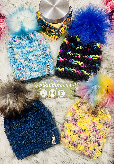 I hope you enjoy this pattern and love to knit these up! I’d love to see your creations so please tag me @defiknitlytasteful and use #saltwatertaffybeanie