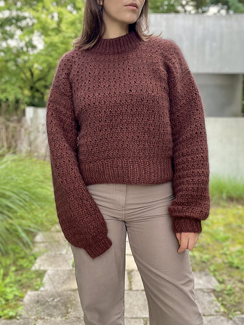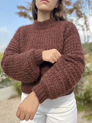 The Sugar and Spice Sweater is a cozy Tunisian crochet sweater inspired by the warming fragrance of cinnamon and cloves. The sweater features a beautiful knit eyelet stitch pattern, an incredibly cozy mock neck collar, and a stylish thick bottom ribbing. The length of the sweater is always adjustable, so you can choose to make it as cropped or as along as you want.
