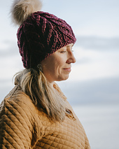 This relaxed, twisted stitch hat is designed to make beautiful use of those interesting single skeins you’ve been eyeing or saving up. With instructions for two different weights of yarn from Bulky and Super Bulky, this hat is perfect for gift knitting.