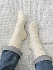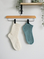 **The instructions include so many options across 5 sizes: fingering-weight or DK-weight, cuff-down or toe-up, Flap and Gusset or Shadow Wrap heel, ankle or crew socks.**