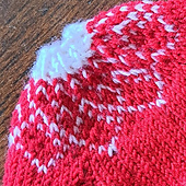 As my 2023 and 2024 versions, they are knit in the round, starting with a white neck, and the top part is used to insert the main colour, and the increased stitches are part of the design.