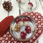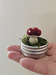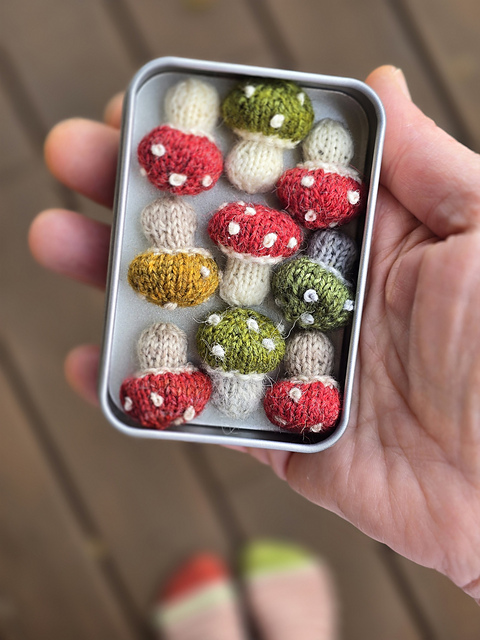 I recommend to use a really thin needle (2 mm/US 0) to get really tiny mushrooms.