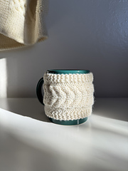 The mug cozies are knit flat on 4.5mm needles and only require 12-18 grams of worsted weight yarn (26-40 yds).