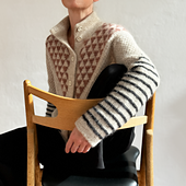 The sleeves are worked one at a time. Stitches are knitted up along the armholes and the sleeve cap is shaped using short rows. Intarsia is worked in stripes according to the chart, while decreases are made along the inside of the sleeves.