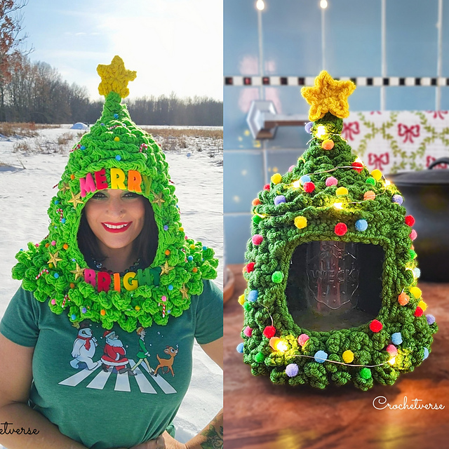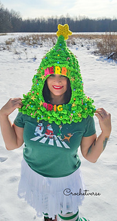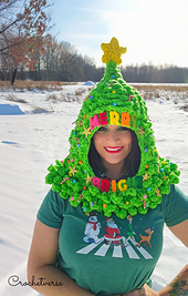 FIRST: Oversized Tree Hat created by holding (4) strands of ww yarn together and using a P/Q(15mm) hook