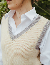 You’ll start off with the Tunisian crochet ribbing at the bottom of the vest, changing colors at the end of some rows to get visual interest without complicated colorwork. Then, after assembly, you’ll work traditional crochet ribbing around the neckline and armholes to get that stretchy, comfortable feel.