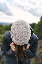 Perfect for knitters looking for a classic cabled hat with nature-inspired, mountain vibes.