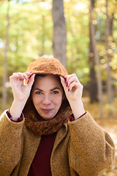 Into The Hoods Scarf (aka Scoodie) is worked from the top down. It starts with a rectangle that uses an i-cord cast-on and my signature Lola’s Pick Up Line technique. The body of the hood flows off of this base towards the neck. Once the hood is complete, your stitches split into two halves that are worked downwards with short rows filling in at the back of the neck. Decreases taper each side to a point, creating a long scarf with tails that are perfect for wrapping, draping, or tying around your neck however you like.