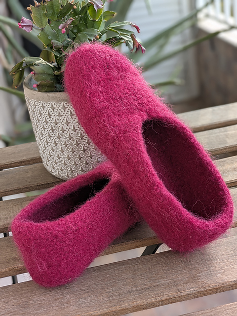 Even if your gauge is a bit off, your tension isn’t perfect, or your stitches look a little wonky — don’t stress! Felting evens everything out and shapes the slippers beautifully.