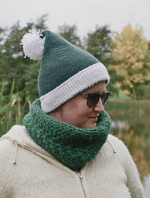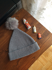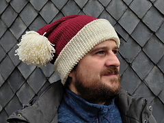 This is a pattern for cute pointy elf hat with a double brim and a pompom on the end.