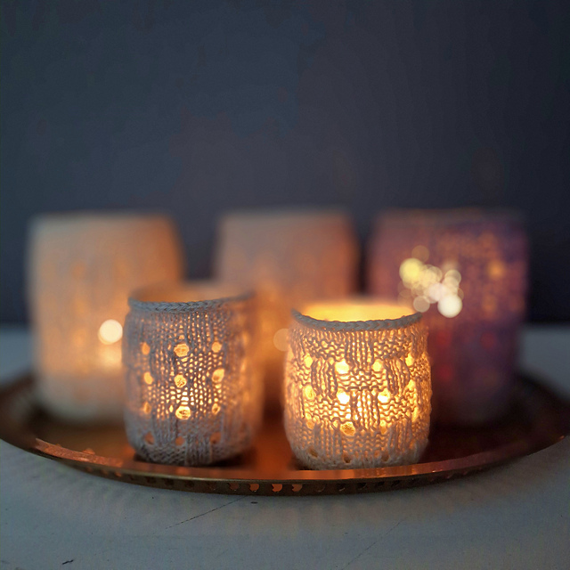 With an easy-to-knit stitch pattern, empty jars can quickly get a beautiful make over to look nice enough for the coffee table – and to become a lovely, bright spot, a Lichtblick, to brighten up dark and dull days.