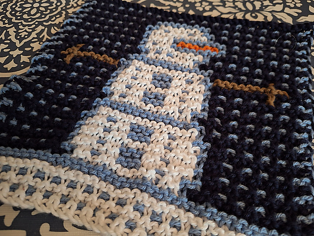 The techniques for this pattern are easy! You only need knit and slipped stitches to create the pattern, and only one colour of yarn is used at a time. This is a great introduction to the techniques used for “mosaic knitting”, and creates a cute and practical cloth in no time!