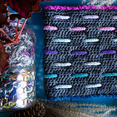 Yarn: Any AK(3 weight) yarn approx. 190 yds of MC and 16 x 9 yds of mini skiens for approx. 335 yds. total per cowl.