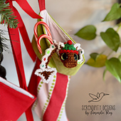 - Materials: size 4 yarn in 2 colors (Cookie color: 35-40yds; Icing color 15-20yds), E/3.5mm hook, 16mm sinker/trapezoid safety eyes (linked in the pattern), optional 9mm pony beads (28ct), blocking mat, pins, steamer/iron with steam, polyester filling, stitch marker, stuffing stick, optional small elastic hair tie (for head control)