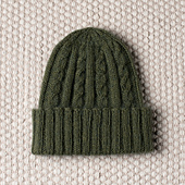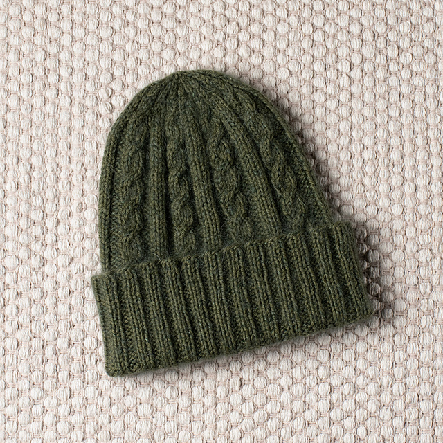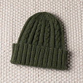 The folded brim is knit in 2×2 rib.