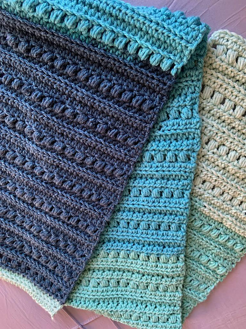 This fun, easy blanket is perfect for beginners and advanced crocheters alike. There are multiple sizes available ranging from a Baby Lovey to California King. Also, instructions on stitch counts if measuring with your heart is preferred. Easy to remember after a few repeats will be just enough variation to stay engaged.