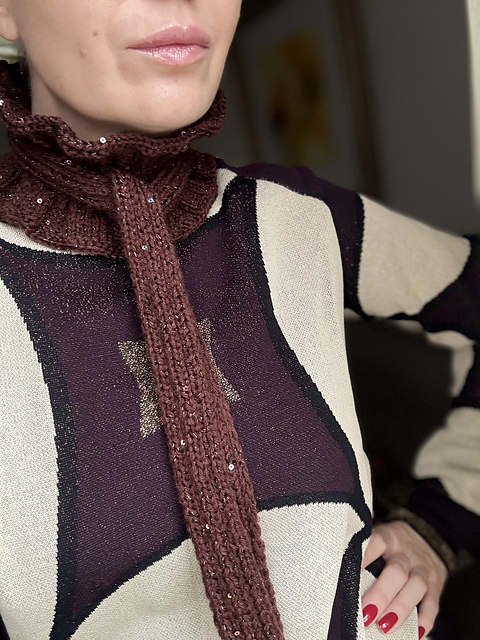 An elegant scarf-collar knitting pattern with a refined, feminine look.
