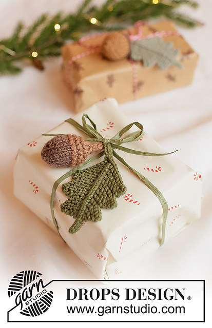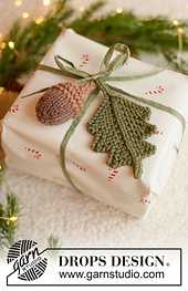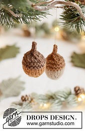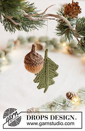 **Knitted acorn and oak leaf/Christmas decoration in DROPS Daisy. Theme: Christmas.**