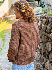 To bring this vision to life, I turned to one of my favorite yarns for winter: Drops Air. Its airy construction and softness make the sweater exceptionally cozy, while still being light and easy to wear. The result is a warm, comfortable piece with striking texture – designed to feel timeless and truly unisex.