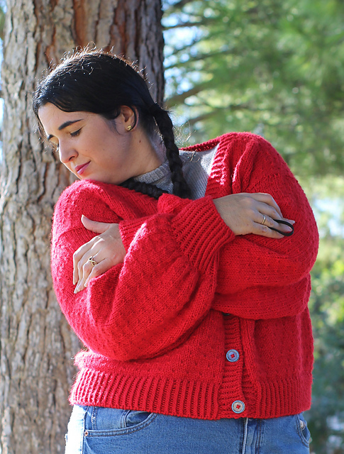 Es una chaqueta que pide invierno, es un abrazo calentito, rápida y entretenida de tejer, el punto plumeti es una de esas secuencias que tiene algo para que no te aburras tejiendo y te de la vidilla para disfrutar tejiendo. Se teje súper rápido, con hilado gordito.