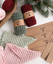 The premium PDF pattern includes printable Winterberry Dishcloth gift tags, with packaging options for both single dishcloths and double sets. These tags are perfect for gifting, selling finished items, or adding a professional touch to handmade presents. Styled in festive holiday colours but easy to adapt year-round, the Winterberry Dishcloth pairs beautifully with the matching Winterberry Wine Bottle Cozy for a coordinated handmade gift.