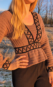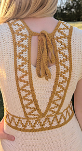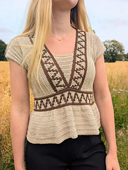 A unique crochet design featuring mosaic crochet and beautiful details. Choose to make a top, peplum top, straight dress, or wavy A‑line dress, with either short or long sleeves.