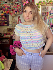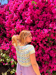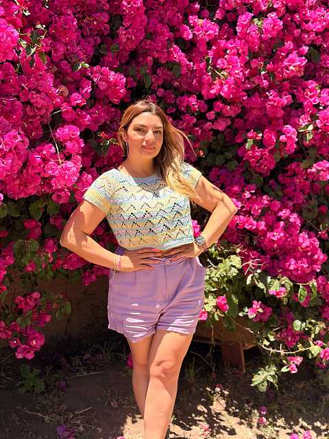 Top Trilace se comienza a tejer en circular, desde el cuello hacia abajo (topdown), sin costuras.