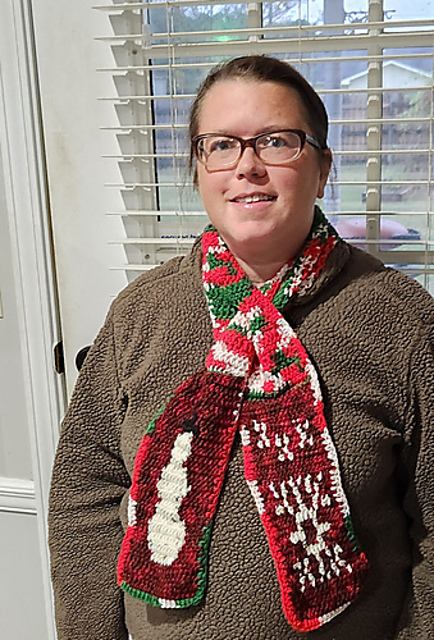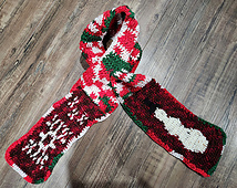 This pattern was originally designed for a month-long MCAL so it is written out in 5 separate parts. The scarf is crocheted in 3 separate pieces that are seamed together. It is a keyhole scarf so no need to tie a knot when wearing! The colorwork features a snowman on one end and a snowflake on the other with the yarn being held within the work so there is neither a wrong or a right side.