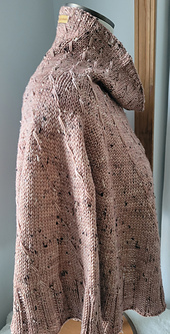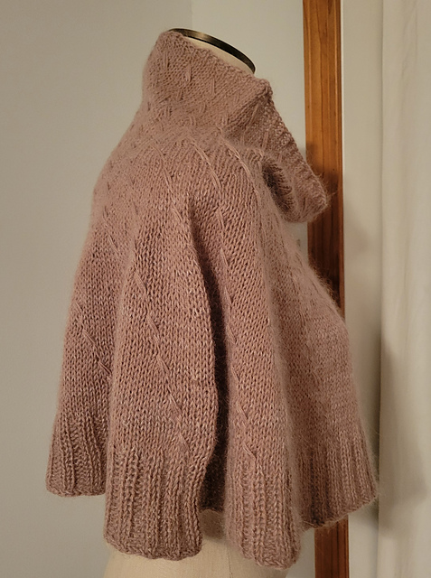 Revolving is a top-down, in the round, capelet pattern that comes in 9 chest sizes (24-30 in/60-75 cm to 72-78 in/180-195 cm) and 3 lengths. It is designed to be a cozy top layer - great for gifting because the ease is generous and no special fitting is needed. Knit in a DK-weight yarn (or fingering + mohair, or fingering held double/marled), this capelet features basic increases in a spiraling pattern for visual interest and to break up the knitting. It features increases made from both "dip" and make-one stitches.