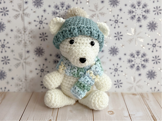 Winter Bear is the first in a year long crochet along series with a new bear pattern released each month. The Winter Bear with its little hat and scarf is the January Bear of the Month pattern. More patterns will be added to the collection throughout 2026. The little Winter Bear sits about 6" tall.