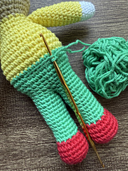 Let's crochet Payasรญn together! This circus artist has an extravagant outfit and flashy makeup, and seeks to make both adults and children laugh at the Lanella Circus.